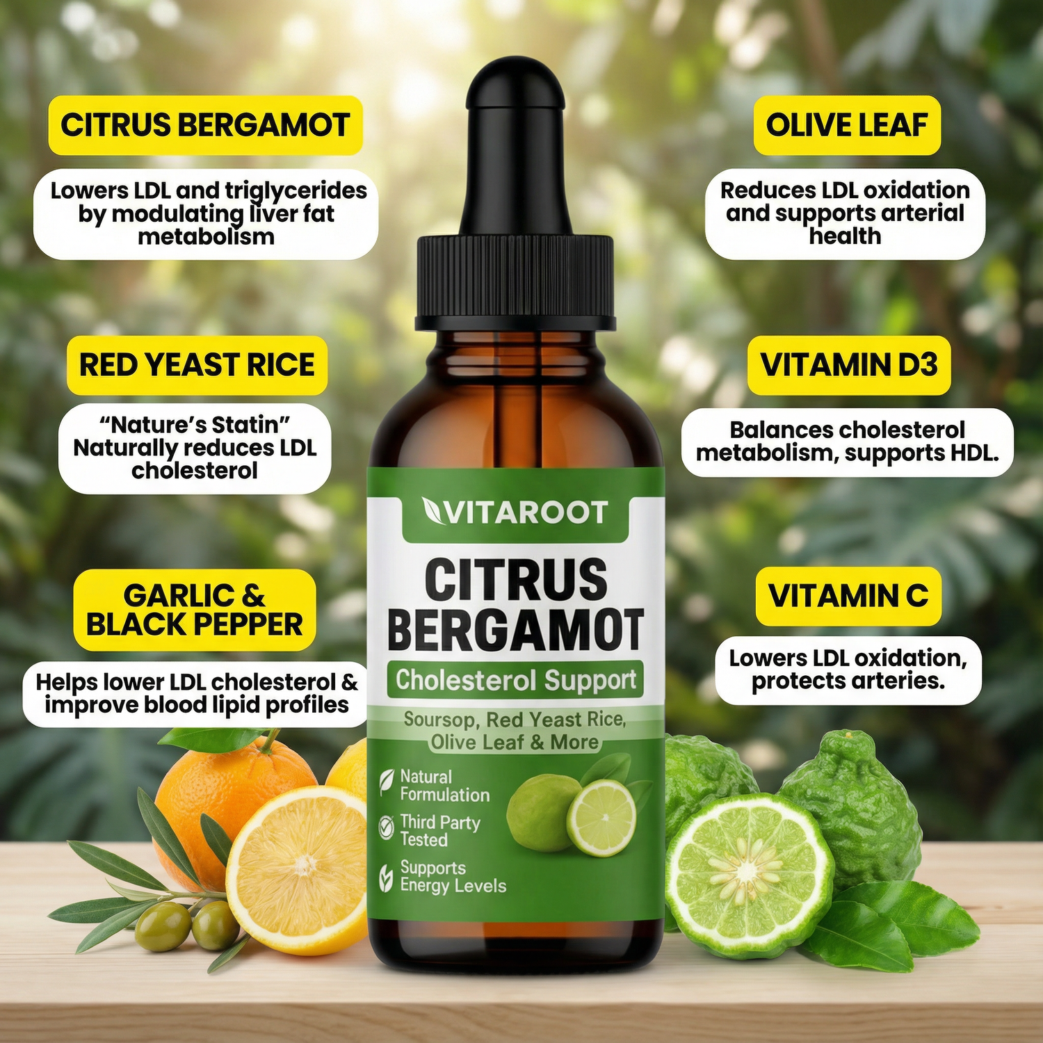 Red yeast rice, citrus bergamot, olive leaf, garlic, soursop, and black pepper work together to support healthy LDL levels, calm arterial stress, and protect your heart. No wasted ingredients. No guesswork. With liquid delivery, every drop counts.